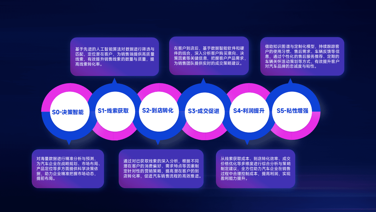 通过拓宽潜在客户来源、、优化线索分配并提高到店转化率,,,,以增强销售效率。。。。同时,,,,利用线索数据不断优化分析模型,,有效提升转化率,,,扩大营销影响力。。。